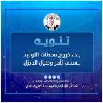 خروج محطات الكهرباء في #عدن تنوه المؤسسة العامة لكهرباء عدن عن بدء الخروج التدريجي لعدد من محطات التوليد بسبب نفاد وقود الديزل و...