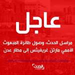 مراسل الحدث: وصول طائرة المبعوث الأممي الى عدن افاد مراسل الحدث: عن وصول طائرة المبعوث الأممي مارتن غريفيثس إلى مطار عدن قبل دقائق معدودة.