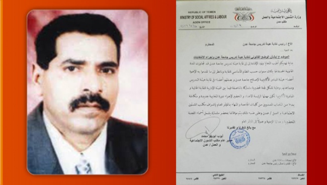 نقابة جامعة عدن ترفض قرار حلها وتتوعد بالتصعيد رفضت نقابة الهيئة التدريسية لجامعة عدن قرار حلها الصادر عن مكتب الشئون الاجتماعية والعمل . وزار وف...