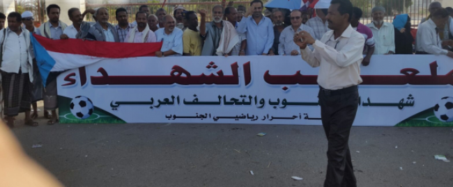 إطلاق اسم "ملعب شهداء الجنوب والتحالف" على ملعب رياضي بعدن دشنت جمعية أحرار رياضي الجنوب بحضور قيادات المقاومة الجنوبية والحراك السلمي وجمع من الرياضيين القد...