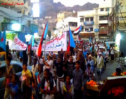 ندوة سياسية ومسيرة جماهيرية إحتفاء بيوم الاسير الجنوبي بكريتر نظمت عصر اليوم الخميس في مخيم التحرير والاستقلال في مدينة كريتر بالعاصمة عدن ندوة سياسية حول القضية...