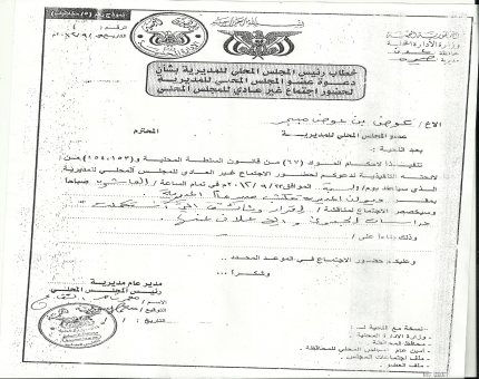 خلافات بيـن اعضـاء محلــي صيــرة بعد تعيين مامور اصلاحي للمديرية اتهم الأخ عوض بن عوض مبجر أمين عام المجلس المحلي لمديرية صيرة مدير عام المديرية الجديد معمر الشقاع و...
