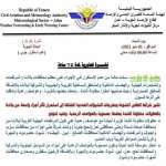 تحذير من الارصاد بشأن استمرار المنخفض المطري في عموم اليمن حذرت الارصاد الجوية من استمرار المنخفض المطري المصحوب بالعواصف وتدفق السيول في مختلف محافظ...