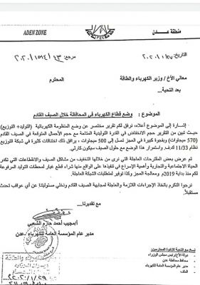 تعرف على سبب اعتكاف مدير عام كهرباء عدن في منزله (وثائق) قالت مصادر عاملة في مؤسسة كهرباء عدن ان المدير العام لمؤسسة الكهرباء مجيب الشعبي، معتك...