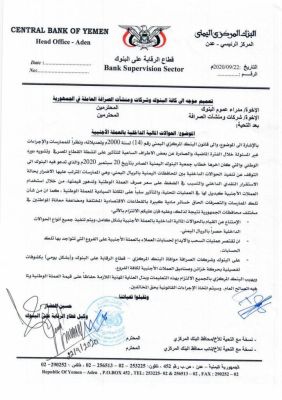البنك المركزي يحبط خطوة حوثية لضرب الريال اليمني عمم قطاع الرقابة على البنوك بالبنك المركزي اليمني، على البنوك وشركات ومنشآت الصرافة العاملة ف...