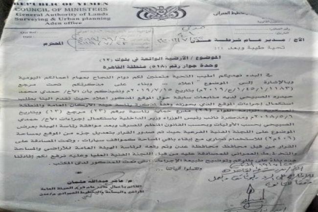 الصبيحي: نافذ يسعى للبسط على ارضيتي بتواطؤ من مأمور المنصورة شكا المواطن حمدي محمد حيدرة الصبيحي من اقدام قوات امنية على ازالة حوش أرضية تاب...