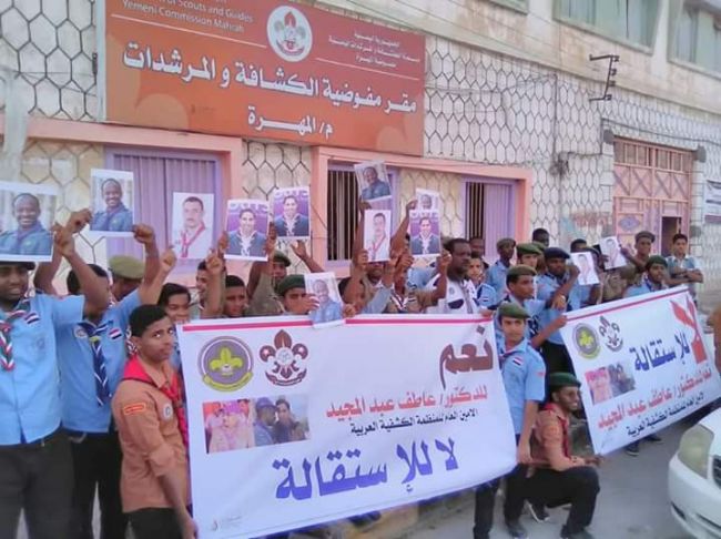 مفوضيات الكشافة اليمنية: نرفض استقالة د. عاطف عبدالمجيد انطلقت احتجاجات كشفية في معظم مفوضيات الكشافة في المحافظات اليمنية.وطالب المحتجون في عدن والمهرة وحج...