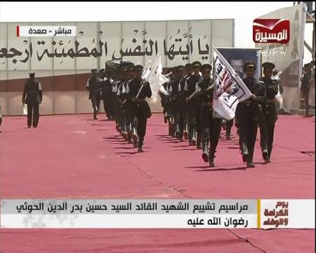 تشييع جثمان مؤسس الجماعة الحوثية بحضور الآلاف من أنصاره شيع أنصار الله المعروفين بأسم ( الحوثيين ) اليوم في صعدة – شمال اليمن - جثمان مؤ...