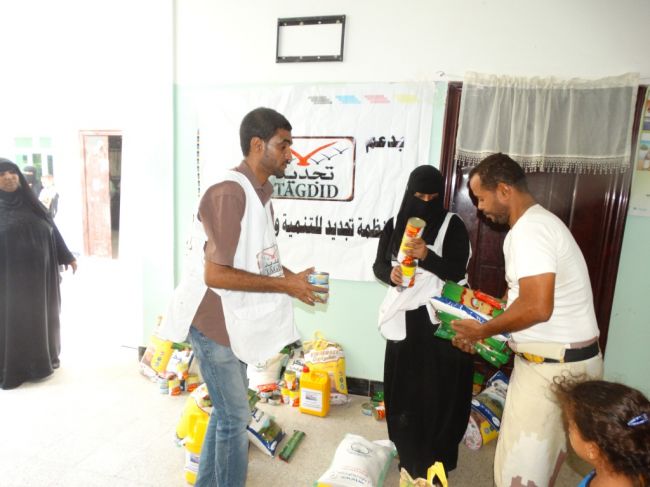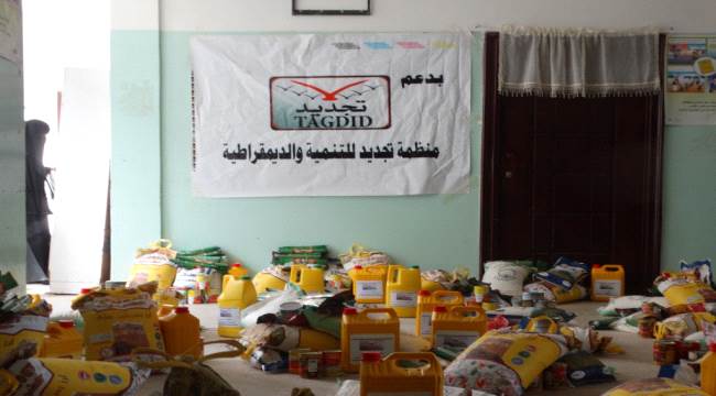 تواصل منظمة تجديد للتنمية والديمقراطية توزيع السلة الغذائية الرمضانية في عموم مديريات محافظة عدن الثمان ( صيرة ،المعلا التواهي خورمكسر والشيخ عثمان والمنصورة ودارسعد والبريقة ) والتي تزيد عن (٨٢٥)سلة غذائية .فيما خصصت لمحافظة ابين ( ٢٥٢) سلة غذائية ،ولمحافظة لحج ( ١٨٥) وبتمويل من فاعلي الخير .وفي هذا الاطار تواصلت اليوم عملية التوزيع للسلة الغذائية في مديرية دار سعد وتشمل السلة الغذائية ( دقيق ،سكر،ارز،فول،تونه طماط،مكرونة،وزيت .