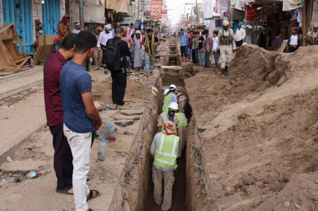 كما تفقد الاستاذ / أحمد محضار والمهندس / زكي حداد نائب مدير مؤسسة المياه والصرف الصحي محافظة عدن مشروع الصرف الصحي في شارع الذهب الهاشمي والاطلاع على العمل الجاري تنفيذه من المقاول والتقى بالمهندسين المشرفين على المشروع واستمع الى شرح مفصل عن اعمال الحفريات ومد شبكة الصرف الصحي .