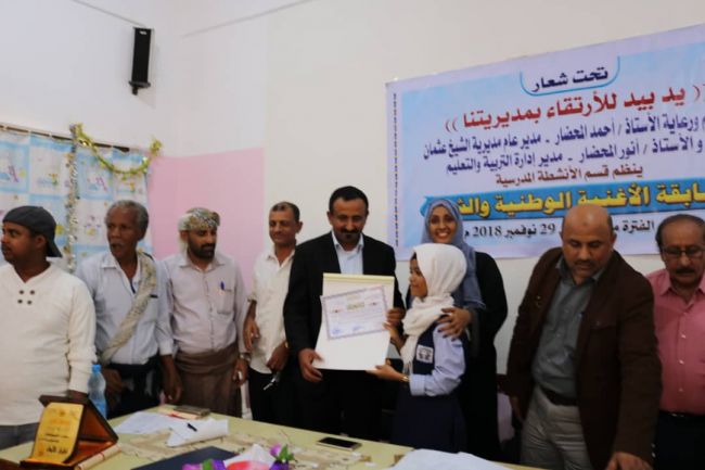 بدعم ورعاية الاستاذ /أحمد محضار أحمد مدير عام مديرية الشيخ عثمان والاستاذ /انور محضار مديرادارة التربية والتعليم م/الشيخ عثمان ينظم قسم الانشطة المدرسية مديرية الشيخ عثمان مسابقة الاغنية الوطنية والشعر تحت شعار ( يد بيد للارتقاء بمديريتنا ) وبحضور الاخ /خالد الجعيملاني وعلوي النوبة وكلاء محافظة عدن والاخ/خالد هيثم مدير ادارة الانشطة المدرسية مكتب التربية عدن والاخ /علي عبد المجيد الامين العام للمجلس المحلي في المديرية للتنافس بين الطلاب والطالبات في مدارس المديرية على المركز الاول بعد ان خاضوا عددة تصفيات للوصول الى المنافسة النهائية في مجال الاغنية الوطنية والشعر .