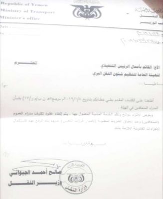 ويأتي التوجيه بناء على مذكرة وزير النقل صالح الجبواني للهيئة بالغاء تكليفات سبق ان اصدرها لمتعاقدين لم تتجاوز خدمتهم سنتين ونصف بدرجة مدراء عموم بالهيئة والذين لايزالون ضمن الوظيفية التعاقدية وبالأجر الموسمي ولا تنطبق عليهم شروط الوظيفة العامة المنصوص عليها بقانون الخدمة المدنية ولائحتها التنفيذية.