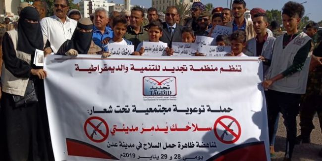 منظمة تجديد تنفذ حملة توعوية بظاهرة حمل السلاح في عدن
