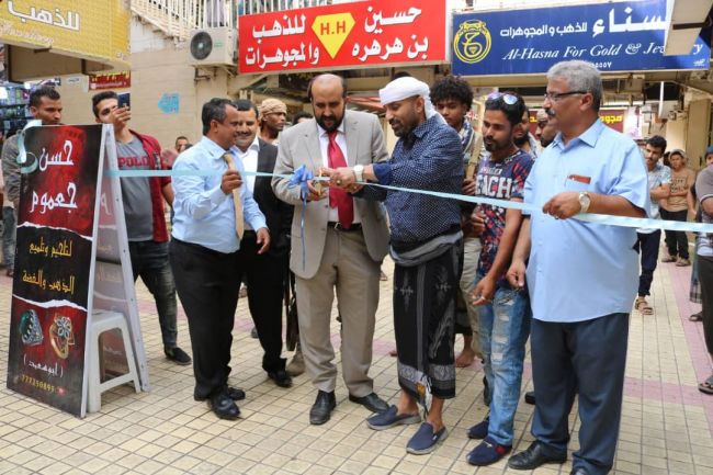 دشن الاستاذ /أحمد محضار أحمد مدير عام مديرية الشيخ عثمان افتتاح معرض الرسم التشكيلي وبدعم من الاخ / بن يزيد للصرافة