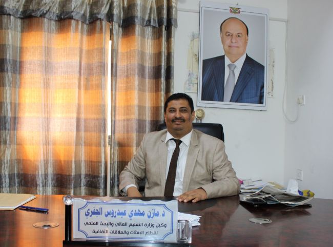 بشر وكيل وزارة التعليم العالي لشؤون البعثات د. مازن الجفري الطلاب المبتعثين بقرب صرف مستحقات الطلاب المبتعثين للخارج.