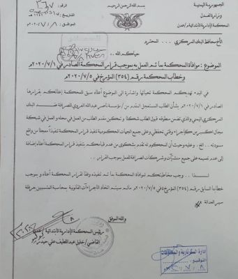 وحصل الموقع على صورة مذكرة وجهتها المحكمة للبنك، عقب شكوى من عدم عدم تنفيذ حكم قضائي بإعادة فتح منشأة العروي للصرافة والسماح لها باستخدام شبكتها" مجال إكسبرس" للتحويلات المالية الى حين الفصل في الدعوى وتعميم ذلك على شركات الصرافة الأخرى، وإلزام الجهات الحكومية بتنفيذ القرار تنفيذا معجلا أستنادا إلى قانون المرافعات.