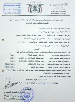 نائب رئيس الوزراء يشكل مجلس تاديبي بتاريخ 2020-07-14 الساعة 08:19 عدن/ خاص أصدر نائب رئيس الوزراء- وزير الداخلية م. احمد الميسري مجلس تاديبي، للنظر في مخالفات منتسبي الداخلية. وتشكلت اللجنة من اللواء محمد مساعد الأمير رئيسا وعضوية كلا من: محمد عبدالقادر الرملي و د. طارق النسي وعدنان القلعة ورياض السقاف.