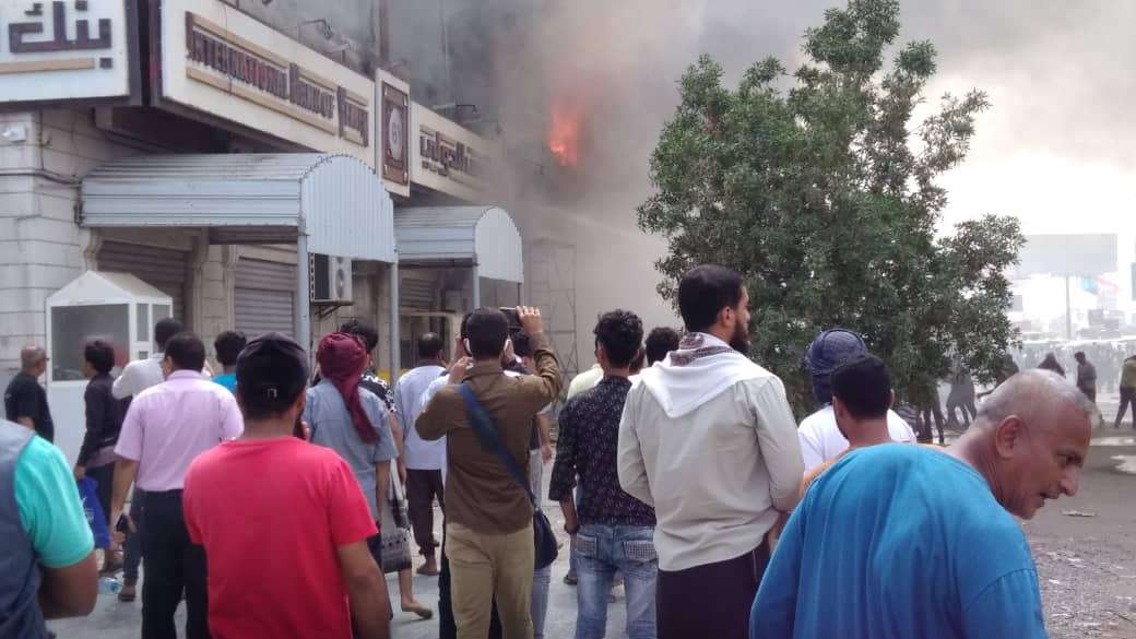 عاجل/ حريق هائل يلتهم مركز تجاري في عدن "صور" بتاريخ 2020-11-18 الساعة 12:21 عدن جلف/ خاص يلتهم حريق هائل في هذه الاثناء مركز تجاري بمدينة عدن. وافاد شهود عيان لعدن جلف ان حريقا اندلاع في مركز دار التحف التحاري الكائن في جولة كالتكس بالمنصورة في مدينة عدن، لم تتمكن فرق الإطفاء من السيطرة عليه حتى اللحظة.