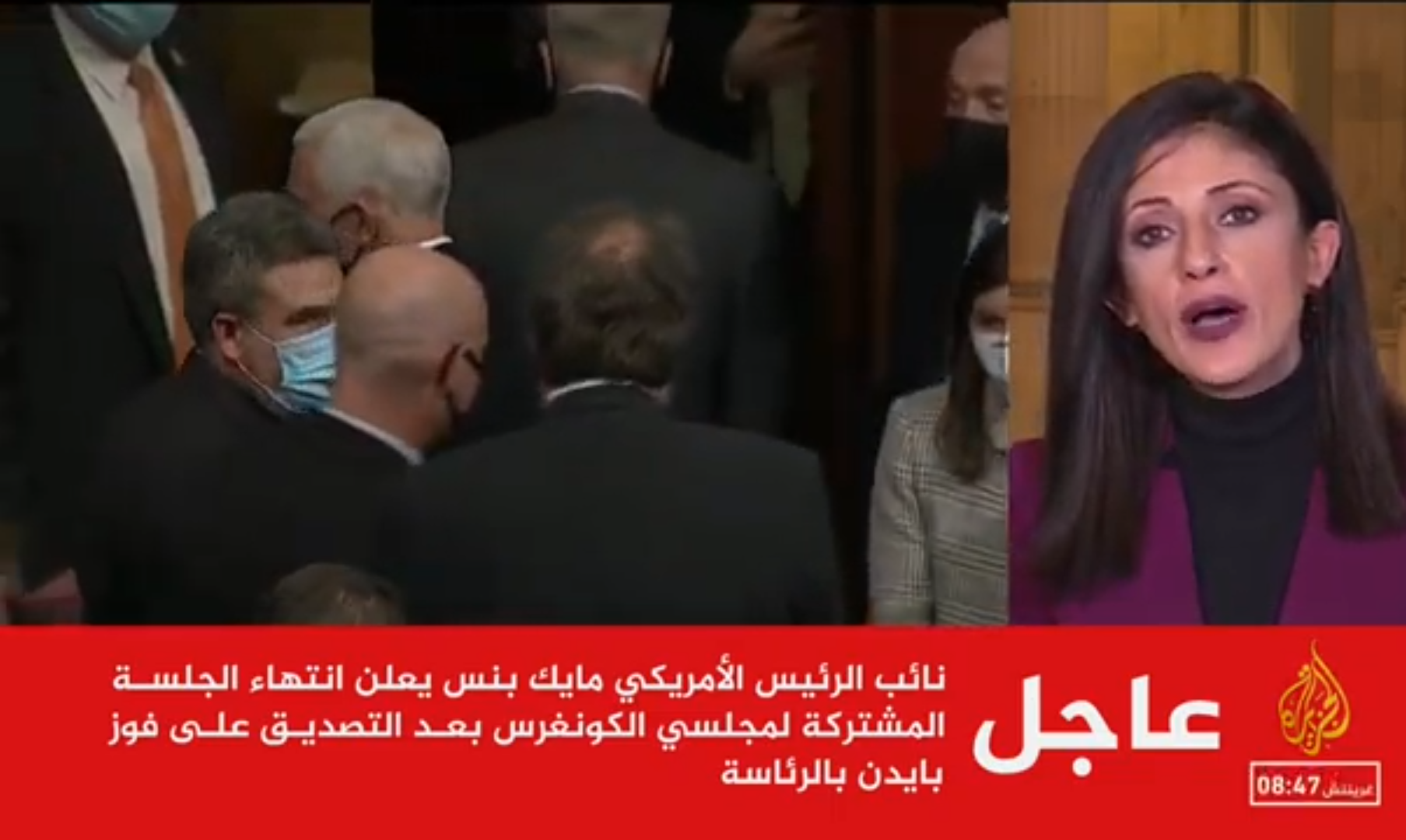 عاجل مجلس الكونجرس يصادق على فوز بايدن بالرئاسة وكاملا هارس نائبة الرئيس بتاريخ 2021-01-07 الساعة 11:53 صادق مجلس الكونجرس يصادق على فوز بايدن بالرئاسة وكاملا هارس نائبة الرئيس في هذا الاثناء.