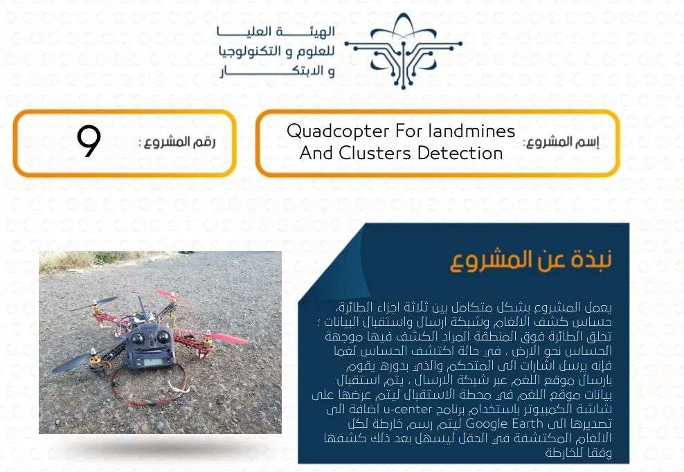 ابتكر مهندس يمني يدعى "شادي رياض" طائرة مسيره تكتشف وتحدد مكان الالغام والمتفجرات.