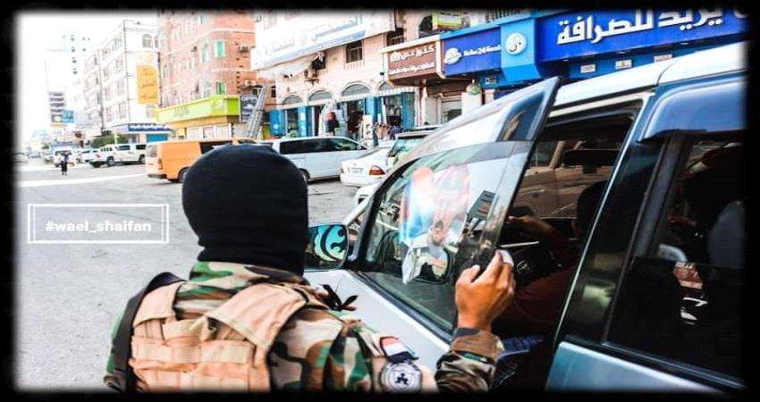 واشرف القائد جلال الربيعي قائد الحزام الإمني بالعاصمة عدن على تنظيم حركة السير ومنع المعاكسين وازالة العواكس من على السيارات ..