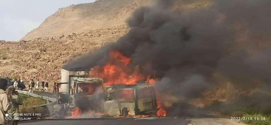المصادر ذاتها أكدث ، إن الحادث وقع في نقيل سمارة نتج بفعل اصطدام باص مع دينه محملة بالمشتقات النفطية، أدى الى حريق هائل و وضحت المصادر بأن هناك عدد من الركاب ماتوا حرقا وتفحمت جثثهم داخل الباص. ويأتي هذا الحادث بعد اقل من اسبوع ، من حادث تصادم في نقيل سمارة