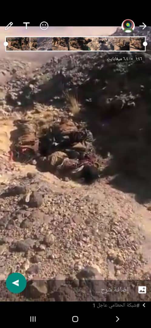 وفي جبهة ميسرة رغوان اغتنم الجيش،عربه وطقم وعيار 23 ، وفرت مليشيات الحوثي تاركة عدد من جثث عناصرها