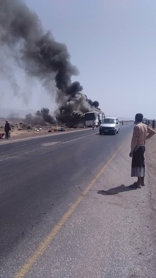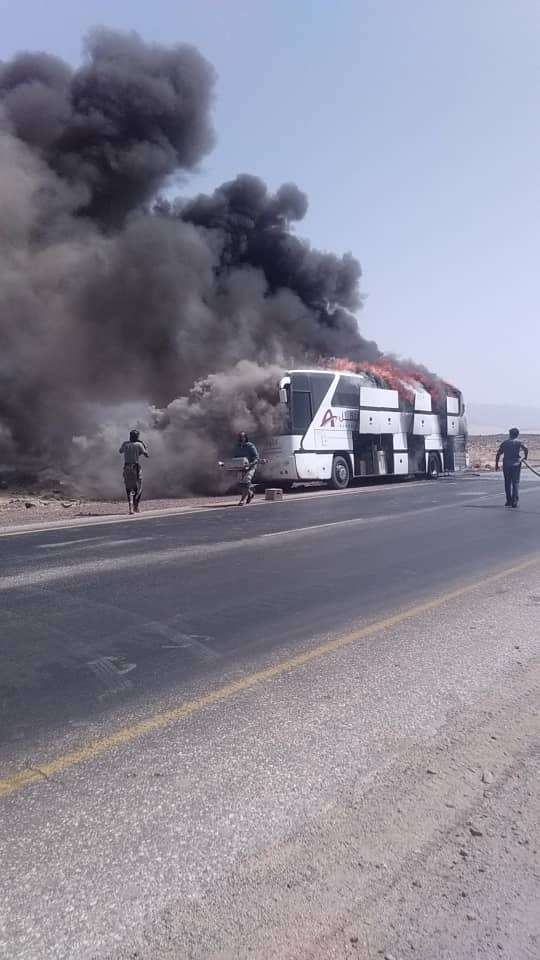حريق يلتهم حافلة نقل ركاب بحضرموت صور بتاريخ 2021-03-24 الساعة 17:12 احترقت حافلة للنقل جماعي , الاربعاء , على طريق شبوة حضرموت في منطقة بئر علي . والتهمت النيران الحافلة وحولتها الى هيكل حديدي وسط معلومات عن نجاة الركاب الذين استطاعوا مغادرة الحافلة مع بداية اندلاع النيران, غير انه تقطعت بهم السبل في منتصف الطريق .