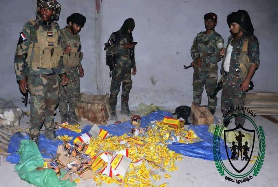 و أشرف أركان قوات الحزام الأمني في العاصمة عدن العقيد عمار السرحي، شخصياً، على النزول إلى المستودع ومعاينته وحصر المهربات المضبوطة.