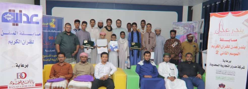 اختتمت في عدن مسابقة المتقن للقرآن الكريم حفظا وتلاوة وتجويدا والتي شارك فيها ثمانون حافظا للقرآن الكريم من مختلف مديريات محافظة عدن أقامتها مؤسسة الجيل للإنتاج الفني خلال شهر رمضان برعاية شركة بانافع للعود لصاحبها الشيخ عمر بانافع ابو حاتم .
