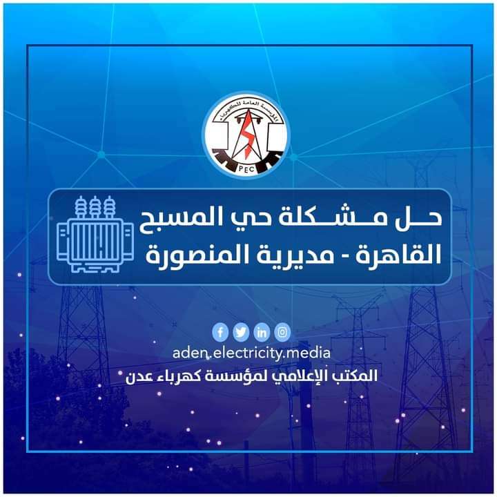وثمن مدير عام مؤسسة كهرباء عدن الأستاذ سالم الوليدي إستجابة المحافظ بشأن توفير المحول الجديد بعد معاناة دامت قرابة إسبوع لأهالي حي المسبح بمنطقة القاهرة.