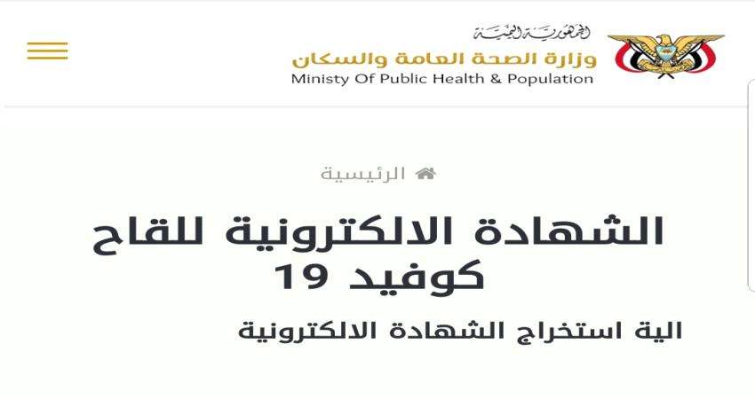 أطلقت وزارة الصحة العامة والسكان من العاصمة المؤقتة عدن اليوم خدمة البحث واستخراج الشهادة للقاح كوفيد ١٩ من موقعها الرسمي على شبكة الإنترنت.