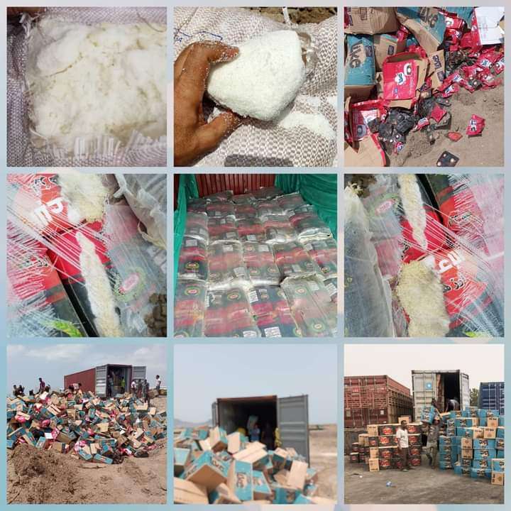 قامت الهيئة اليمنية للمواصفات والمقاييس عبر مكتبها في ميناء المنطقة الحرة بالعاصمة المؤقتة عدن وجمارك المنطقة الحرة باتلاف 2086 كرتون من منتج كيك جوز الهند مخالف للمواصفات القياسية لوجود تزنخ في المنتج.