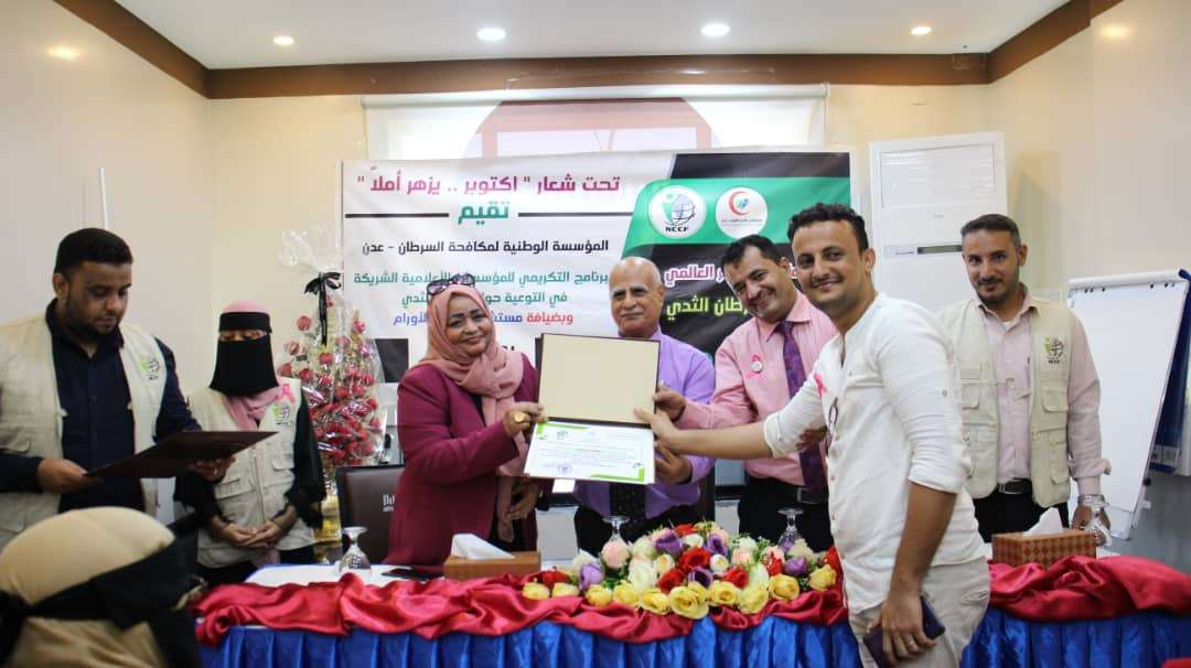اقامت المؤسسة الوطنية لمكافحة السرطان في عدن، يوم مفتوح للاعلاميين (أصدقاء مرضى السرطان)، والذي ياتي تواصلا لانشطة الشهر العالمي (أكتوبر) 2021 للتوعية بسرطان الثدي.