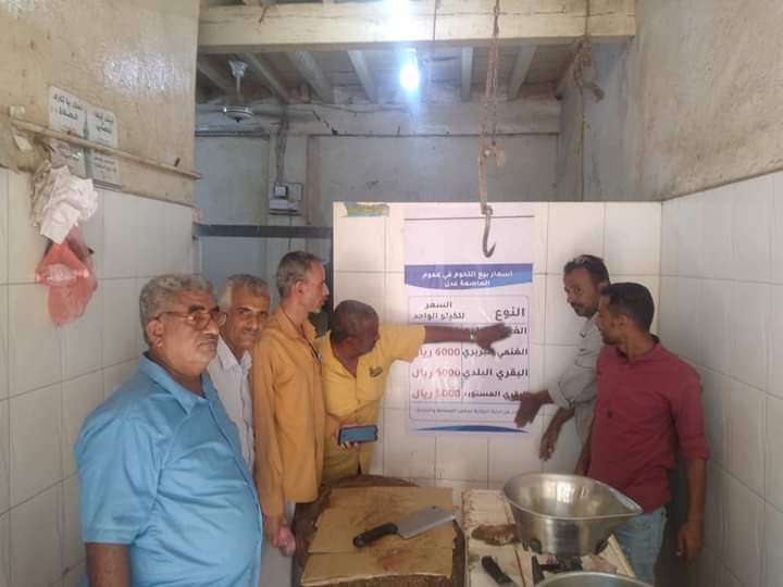تواصلا لجهود السلطة المحلية في مديرية المعلا ومكتب وزارة الصناعة والتجارة تم صباح اليوم النزول الي ملاحم المديرية لالصاق البانرات الخاصة بأسعار اللحوم في ملاحم المديرية.