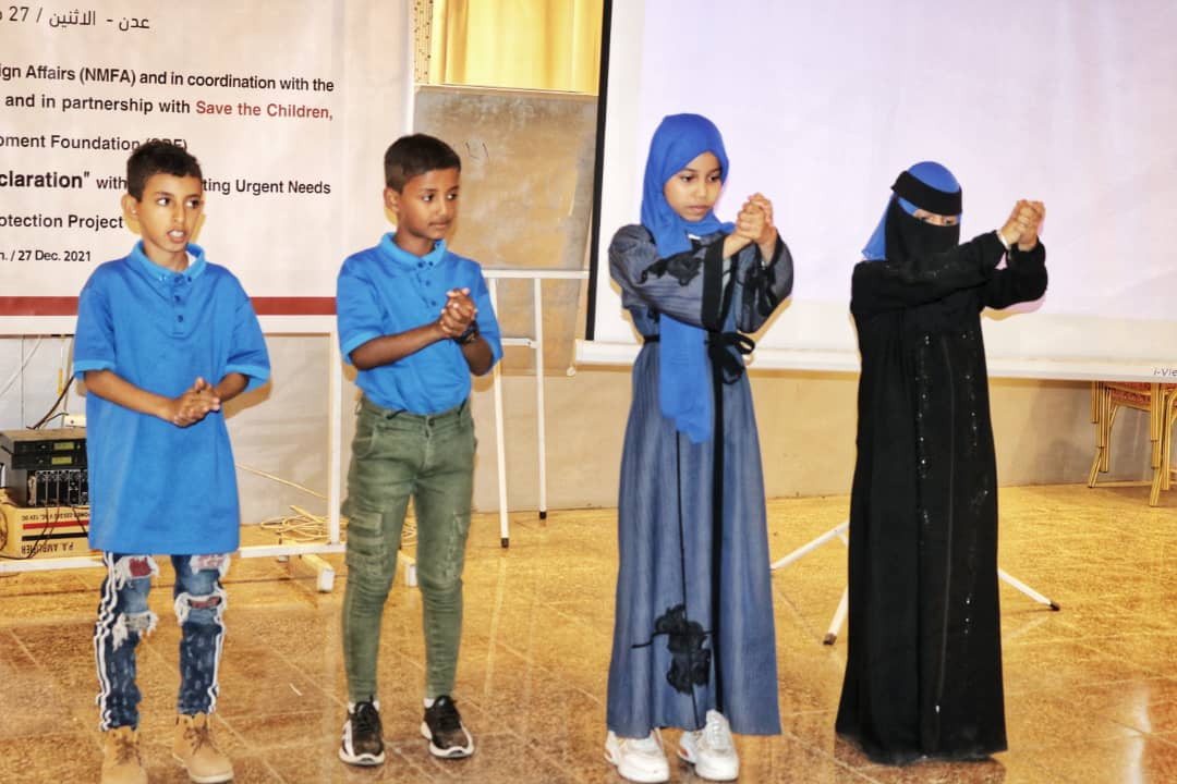 بتمويل من وزارة الشؤون الخارجية النرويجية وبالتنسيق مع السلطة المحلية في العاصمة عدن اقامت مؤسسة التنمية المستدامة بالشراكة مع منظمة رعاية الأطفال فعالية إعلان المدارس الآمنة ضمن مشروع تلبية الاحتياجات الطارئة لحماية الطفل، صباح اليوم في فندق كورال بمديرية خور مكسر بعدن.