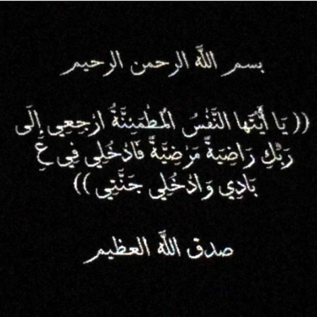 (( يَا أَيَّتُهَا النَّفْسُ الْمُطْمَئِنَّةُ ارْجِعِي إِلَى رَبِّكِ رَاضِيَةً مَرْضِيَّةً فَادْخُلِي فِي عِبَادِي وَادْخُلِي جَنَّتِي )) صدق الله العظيم