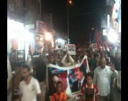خرج المئات من انصار الحراك الجنوبي في مدينة عدن بمسيرة جماهيرية ضمن الفعاليات الاسبوعية لثورة الجنوبية السلمية المحدد لها في مدينة التواهي .