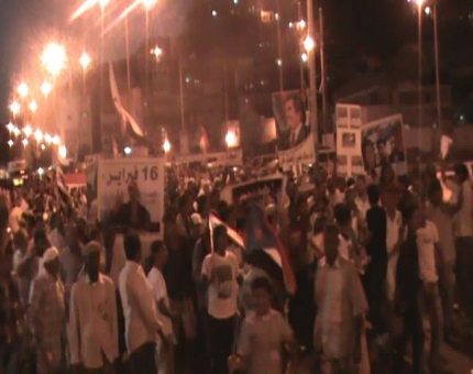 ضمن فعاليات يوم الاسير الجنوبي في عموم محافظات ومناطق الجنوب المحتل للوقوف مع الاسير الجنوبي القابع في سجون الاحتلال وكذالك التأكيد على المبادئ التي من اجلها خرج من اجلها شعب الجنوب وهي التحرير والاستقلال ففي العاصمة عدن خرج اليوم الخميس ابناء عدن بمسيرة حاشدة انطلقت من مخيم التحرير والاستقلال بمدينة كريتر وجابت المسيرة بعض شوارع المدينة رفع من خلالها المشاركون اعلام دولة الجنوب وصور الشهداء والمعتقلين وكذالك صور الرئيس علي سالم البيض والزعيم باعوم ورددوا الشعارات الثورية الجنوبية المطالبة بالتحرير والاستقلال واستعادة الدولة الجنوبية .