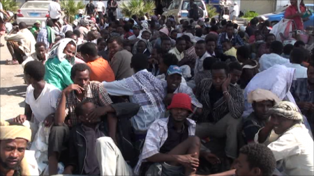احتجاجا صامت وغير مألوف ينفذه المئات من الوافدين الإثيوبيين في تقاطع جولة كالتكس بمديرية المنصورة بمحافظة عدن، بهدف لفت انظار الحكومة وقيادة المحافظة لمأساتهم والاستجابه لمطلبهم الوحيد: ترحليهم الى بلدهم بعد ان ضاقت بهم سبل العيش في محافظة عدن .