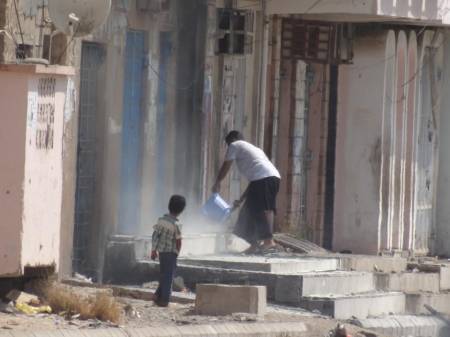 وقال شهود عيان: وشبت النيران في مبنى المكتب التنفيذي للإصلاح منذ الصباح الباكر والذي يبدوا أحدى هذه الطلقات قد تسببت بحريق داخل المبنى.
