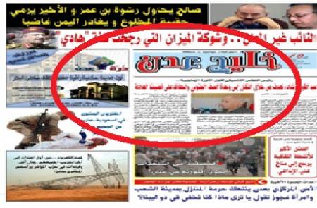 وعلم موقع " خليج عدن" ان الصحيفة المحدودة الانتشار والممولة من المكتب الاعلامي لحميد الأحمر، لم تصدر منذ اسبوعين بعد ايقاف مخصصتها من صنعاء.