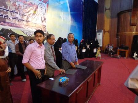 أقامت منظمة شباب أبين للتنمية والديمقراطية الحفل الختامي لمشروع تحالف شباب أبين امس في قاعة أبن خلدون بكلية الآداب/ جامعة عدن .