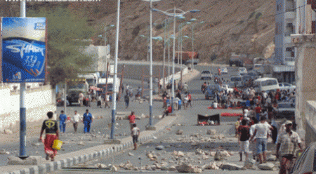 ومنع الشباب مرور السيارة وتسبب إغلاق الشوارع إلى توقف العمل في ميناء المكلا .