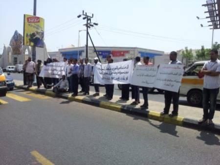 واصل صباح اليوم الأحد عمال ميناء عدن للحاويات ( ميناء كالتكس ) تنفيذ وقفتهم الأحتجاجية الثانية أمام محكمة الإستئناف بعدن , وذلك للاعتراض على سحب ملف قضيتهم المنظورة أمام المحكمة الإدارية إلى شعبة الإستئناف قبل صدور الحكم من قبل المحكمة الإدارية التي كانت تنظر للقضية التي رفعها عمال الميناء ضد مؤسسة موانئ خليج عدن للمطالبة بعلاوة الخطورة وعلاوة طبيعة العمل , وتطبيق أستراتيجيات الأجور المفقودة التي رست على كل عمال مؤسسة موانئ خليج عدن ،وأُستثني منها عمال ميناء عدن للحاويات فقط , وكذالك المطالبة بالتثبيت الحكومي كونهم بدون عقود عمل منذ رحيل شركة موانئ دبي العالمية قبل عام والتي كانت تشغل ميناء الحاويات بالشراكة مع مؤسسة موانى خليج عدن .