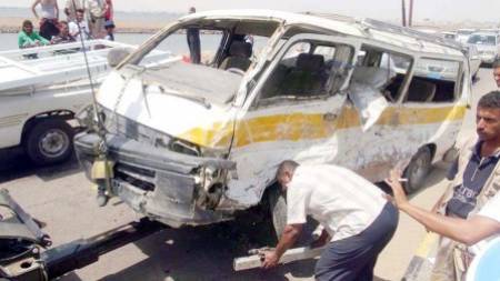 أودى حادث مروري وقع على طريق الجسر البحري في عدن، أمس بحياة مسن وفتاتين عقب تصادم باصين (هايس) محملين بالركاب وسيارة أجرة, كما اسفر الحادث ايضا عن اصابة فتاتين حالتهما حرجة وآخرين بجروح متفرقة تم نقلهم إلى مستشفى الجمهورية التعليمي بعدن.