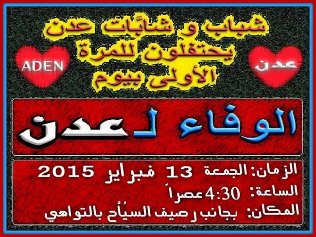 وجه نشطاء من منظمات المجتمع المدني بمدينة عدن الدعوة لتنظيم وقفة "محبة" للتعبير عن حبهم لمدينة عدن .