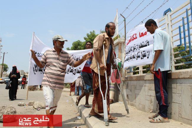 نفذ ناشطون في المجتمع المدني اليوم وقفة احتجاجية امام مبنى محافظة عدن للمطالبة بعلاج جرحى الحرب .