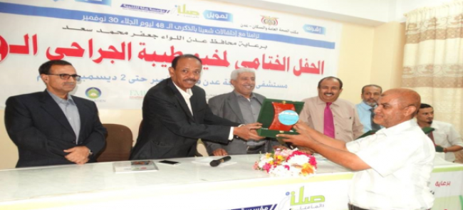 أقيم صباح اليوم بمستشفى الصداقة بمحافظة عدن الحفل الختامي لمخيم طيبة الجراحي ال42.