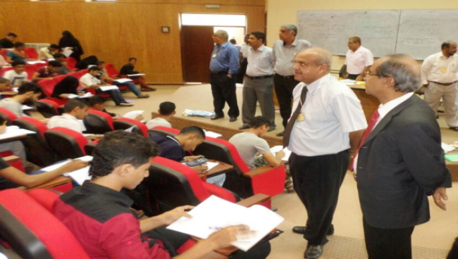 تفقد الدكتور/ حسين عبدالرحمن باسلامة القائم بأعمال رئيس جامعة عدن النائب الأكاديمي لرئيس الجامعة, والدكتور/ محمد أحمد موسى العبادي نائب رئيس الجامعة لشؤون الطلاب اليوم تدشين امتحانات القبول بكلية الهندسة للعام الجامعي (2015/2016م) والتي يجلس فيها حوالي (2900) طالباً وطالبة موزعين على مختلف الأقسام والتخصصات العلمية في الكلية.